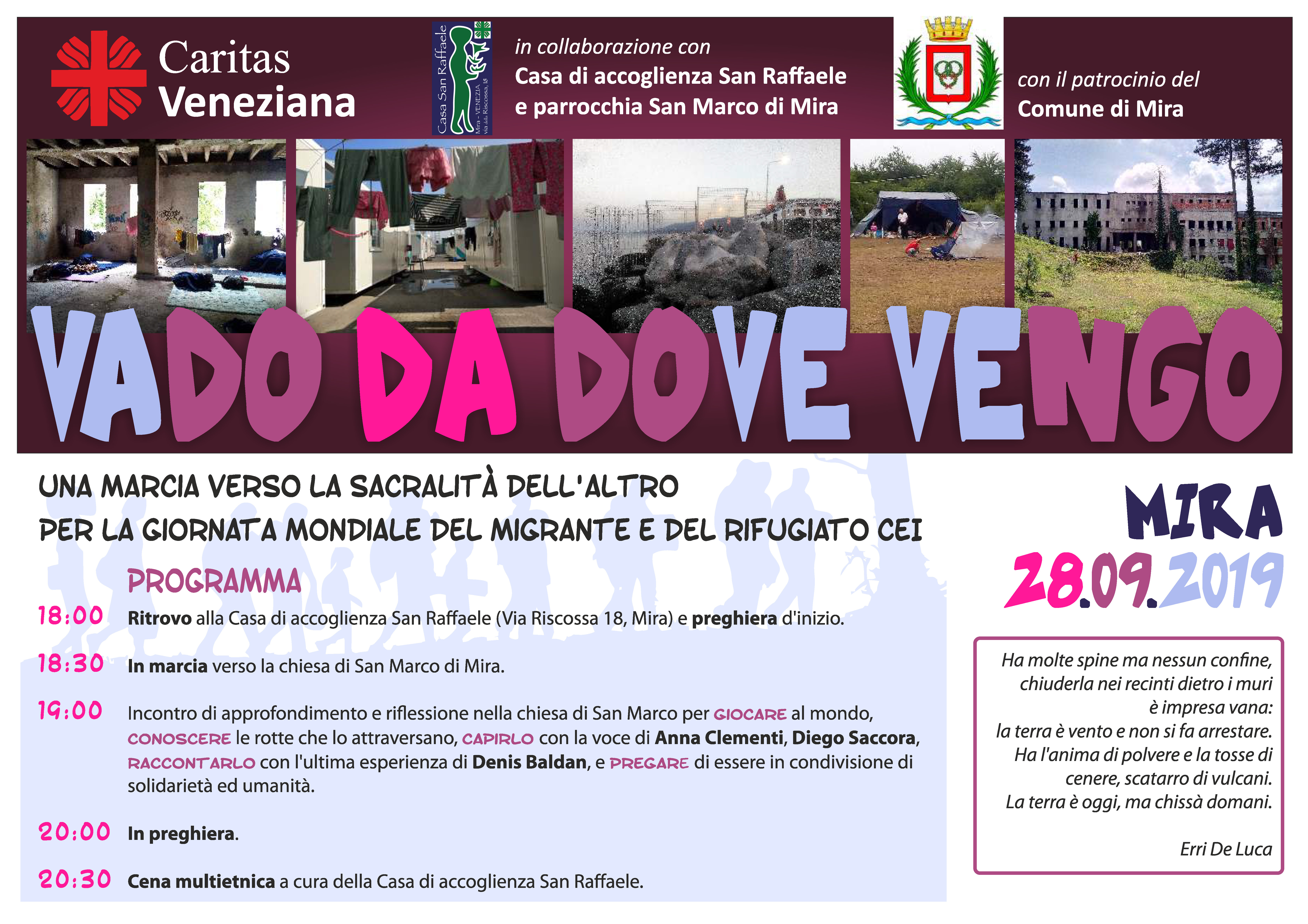 24 Settembre 2019GMMRIniziativeNotizieVado da dove vengo Sabato 28 settembre, in occasione della Giornata Mondiale del Migrante e del Rifugiato promossa dalla C.E.I., la proposta di una “marcia verso la sacralità dell’altro”. Tutte le informazioni nell’allegato.