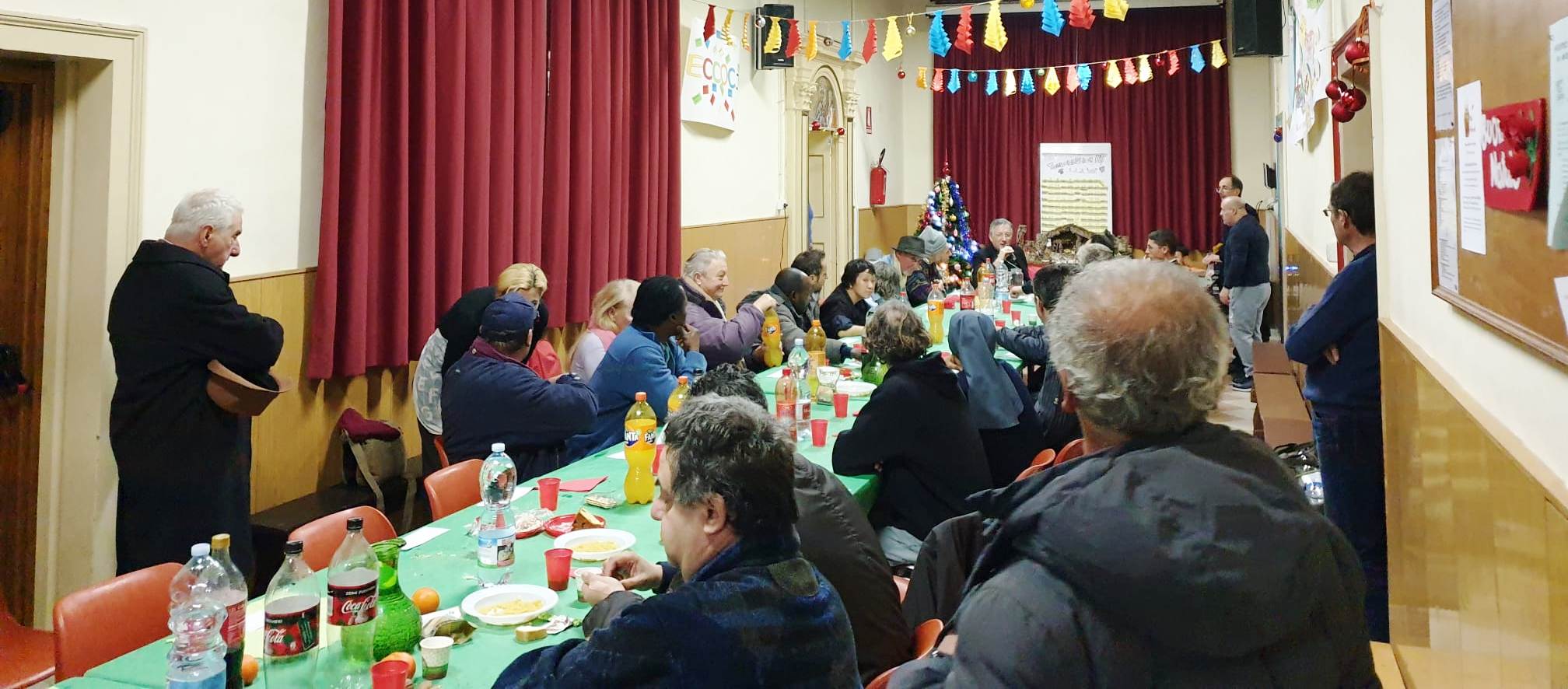 Il giorno di Natale una trentina di ospiti sono stati accolti nel patronato della parrocchia di San Cassiano per il pranzo, assieme al Patriarca Francesco.