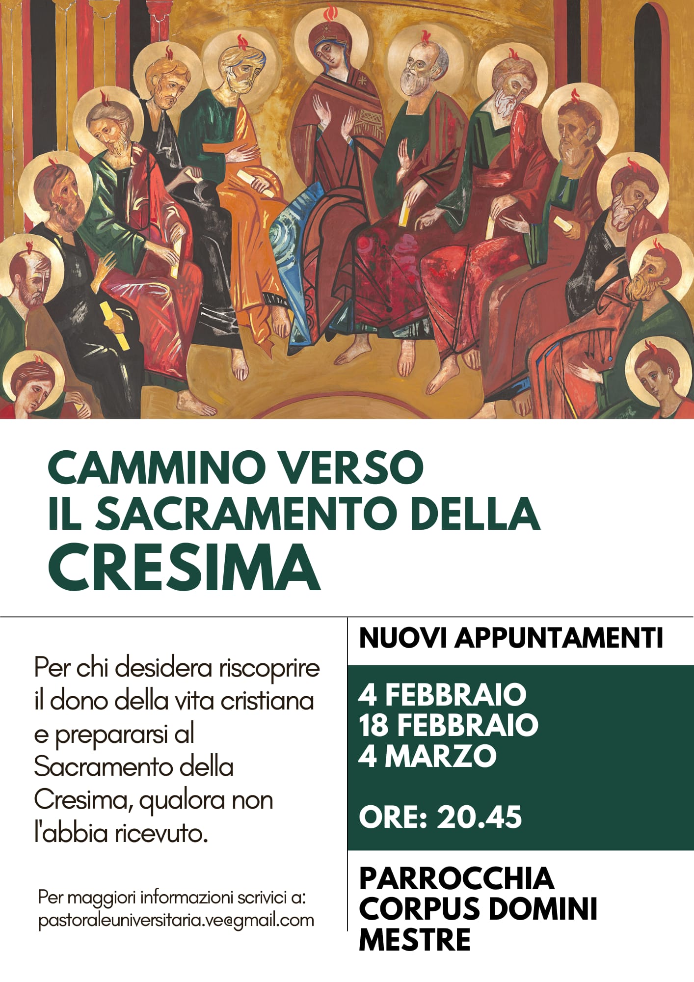Una proposta di cammino a Mestre per chi volesse ricevere il dono della Cresima in età giovane/adulta, ma anche per chi semplicemente fosse curioso e volesse riscoprirne il valore!