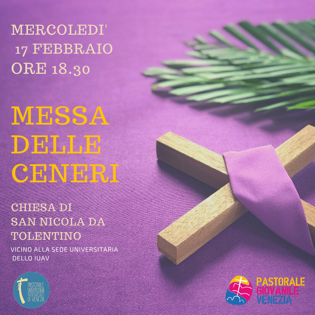 Per iniziare insieme il cammino quaresimale, la Pastorale Giovanile e la Pastorale Universitaria invitano tutti i giovani a partecipare alla S. Messa mercoledì 17/2 alle 18:30 nella chiesa dei Tolentini a Venezia. Guarda le braccia aperte di Cristo crocifisso, lasciati salvare sempre nuovamente. E quando ti avvicini per confessare i tuoi peccati, credi fermamente nella sua misericordia che ti libera dalla colpa. Contempla il suo sangue versato con tanto affetto e lasciati purificare da esso. Così potrai rinascere sempre di nuovo (Christus vivit, 123)