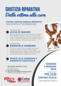Venerdì 3 maggio 2024 Young Caritas presenta: “GIUSTIZIA RIPARATIVA: dalla vittima alla cura”
