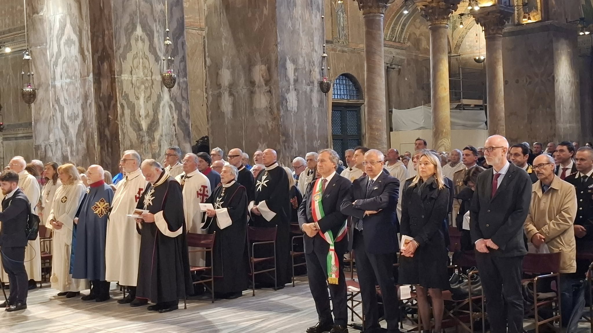 Le parole del Patriarca: «Quest’anno viviamo la festa – che il calendario posiziona all’interno dell’Ottava di Pasqua – nei giorni del cordoglio e del lutto per la morte del Santo Padre Francesco a cui domattina, in Piazza San Pietro, verrà dato l’ultimo saluto terreno con la S. Messa esequiale. Lo abbiamo ricordato con affetto, in questi giorni, a livello diocesano attraverso due partecipati momenti di preghiera qui in Basilica e nel Duomo di Mestre per affidarlo all’abbraccio del Padre al termine della sua vita condotta da “servo buono e fedele” del Signore e della sua Chiesa.Mi piace ricordare che proprio un anno fa, al termine della sua visita a Venezia, Papa Francesco ha sostato qui davanti all’altare – per alcuni momenti di silenziosa e intensa preghiera – davanti alle spoglie dell’evangelista Marco. Di san Marco, anche chi ha letto poco del suo Vangelo – il più antico per composizione e vivace di stile – conosce, però, il famoso motto che campeggia sul leone alato: “Pax tibi Marce evangelista meus”. Vorrei sottolineare in questa circostanza l’impegno costante di Papa Francesco, condotto fino alla fine, a favore della pace a cui ha dedicato il suo ultimo intervento pubblico, il Messaggio Urbi et Orbi di domenica scorsa, Pasqua di Risurrezione. “Nessuna pace è possibile – sono state tra le ultime parole di Francesco – laddove non c’è libertà religiosa o dove non c’è libertà di pensiero e di parola e il rispetto delle opinioni altrui. Nessuna pace è possibile senza un vero disarmo! (…) La luce della Pasqua ci sprona ad abbattere le barriere che creano divisioni e sono gravide di conseguenze politiche ed economiche. Ci sprona a prenderci cura gli uni degli altri, ad accrescere la solidarietà reciproca, ad adoperarci per favorire lo sviluppo integrale di ogni persona umana” (Papa Francesco, Messaggio Urbi et Orbi per la Pasqua, 20 aprile 2025)».