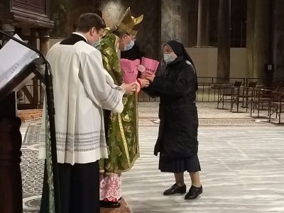 Sono le parole del vecchio profeta Simeone che la Chiesa pone sulle nostre labbra durante la preghiera di compieta, l’ultima che le nostre comunità innalzano a Dio prima del riposo notturno: “Ora lascia, o Signore, che il tuo servo, che la tua serva, vada in pace…” (cfr. Lc 2,29). Aiutiamoci ed aiutiamo le consorelle e i confratelli a testimoniare, con forza, l’appartenenza piena e gioiosa al Signore. La luce delle candele ci ha ricordato che, ricevuto il grande dono del battesimo e dopo la nostra consacrazione religiosa, si è chiamati a vivere l’esistenza come fosse una candela posta nelle mani di Dio.