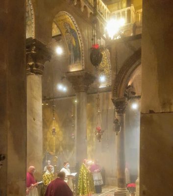 La numerosa presenza dei rappresentanti degli istituti religiosi presenti nel territorio del Patriarcato, che hanno riempito la navata, nel distanziamento dei posti, è stata anche occasione per celebrare gli anniversari di consacrazione e rinnovare i voti dei consigli evangelici: povertà, castità e obbedienza.
