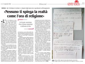 L’articolo “Scuola, dal 18 iniziano le iscrizioni. Le risposte degli alunni ad un questionario sull’insegnamento. Nessuno ti spiega la realtà come l’ora di religione” è tratto dal giornale diocesano “Gente Veneta“, edizione n. 2 del 12 gennaio 2024.