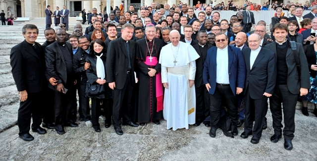 Preside, docenti e studenti della Facoltà di Diritto canonico S. Pio X di Venezia – guidati dal Gran Cancelliere, il Patriarca Francesco Moraglia – hanno partecipato la mattina di mercoledì 7 novembre 2018 in Piazza San Pietro a Roma all’udienza generale di Papa Francesco che, al termine della catechesi settimanale, ha rivolto loro anche uno speciale saluto. Tale appuntamento era inserito nell’ambito del viaggio di studio a Roma, in corso proprio in questi giorni, organizzato per celebrare il decimo anniversario di ritrovata attività della Facoltà di Diritto canonico veneziana.