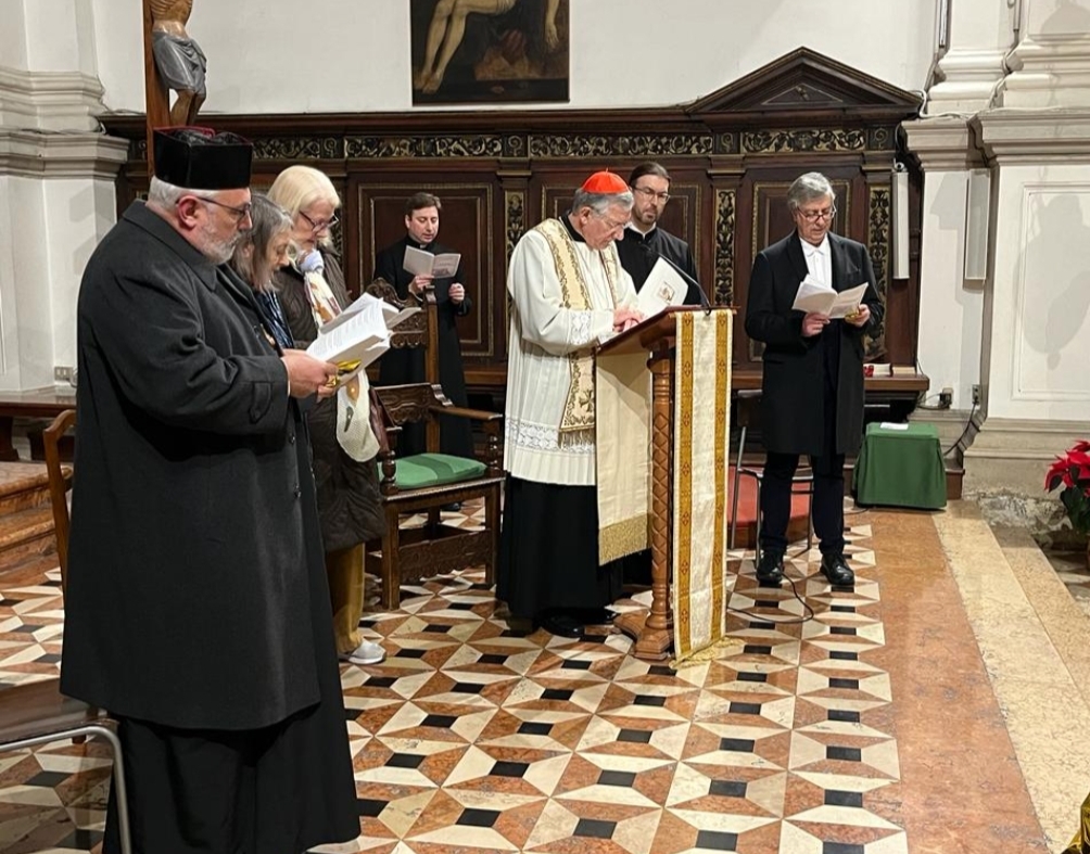 Un particolare saluto rivolgo all’Archimandrita Bessarione, Vicario Generale dell’Arcidiocesi ortodossa d’Italia e Rettore della Chiesa Cattedrale di San Giorgio dei Greci in Venezia, per la riflessione che ci ha appena offerto, e al dott. Alberto Bragaglia, della Chiesa Valdese Metodista di Venezia, attuale vicepresidente del Consiglio locale delle Chiese Cristiane di Venezia, nonché a tutti i rappresentanti delle confessioni cristiane oggi presenti.