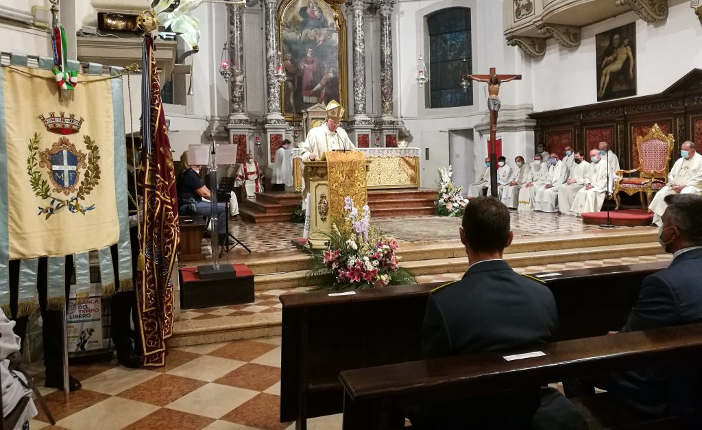 Compiere il bene sempre, mettere da parte ogni male, vivere in pace con tutti, vincere il male con il bene: è la consegna che l’Arcangelo Michele, in lotta contro il “grande drago” e posto a difesa – come custode e patrono – della città di Mestre, lascia a tutti noi oggi. La lotta tra il bene e il male avviene nella nostra storia e nelle nostre città e, soprattutto, si decide nel nostro cuore. Non è possibile non schierarsi, non stiamo infatti alla finestra a vedere uno scenario che non ci appartiene. Chi non si schiera si è già schierato!