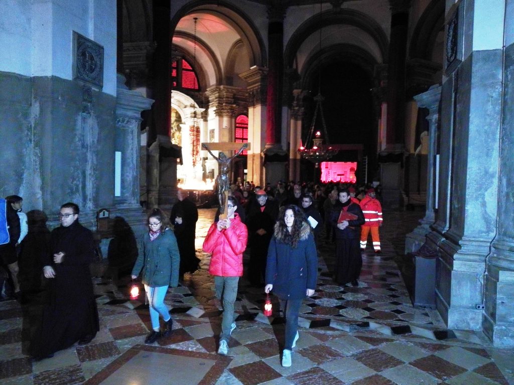 “Il Santo Padre rivolge il suo affettuoso saluto ai giovani che prendono parte al pellegrinaggio diocesano promosso da codesto Patriarcato e dalla fondazione Aiuto alla Chiesa che Soffre al fine di sensibilizzare l’opinione pubblica sul dramma di tanti cristiani perseguitati a motivo della loro fede”: inizia così il messaggio inviato oggi da Papa Francesco al Patriarca di Venezia Francesco Moraglia – a firma del Segretario di Stato cardinale Pietro Parolin – in occasione dell’evento che porterà stasera, nell’ambito della festa veneziana della Madonna della Salute, ad illuminare e “colorare” la stessa basilica della Salute ed altri luoghi simbolo della città – a Venezia e a Mestre – in ricordo e memoria dei cristiani martiri e perseguitati nel mondo (per ulteriori dettagli si rimanda ad altre parti del sito www.patriarcatovenezia.it/newmainsite).