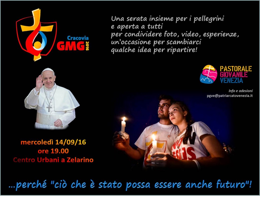 Vi chiediamo, pertanto, di invitare tutti i partecipanti alla GMG dei vostri gruppi e non solo. La serata è aperta anche a chi non è venuto ma desidera unirsi a noi per conoscere quest’esperienza.