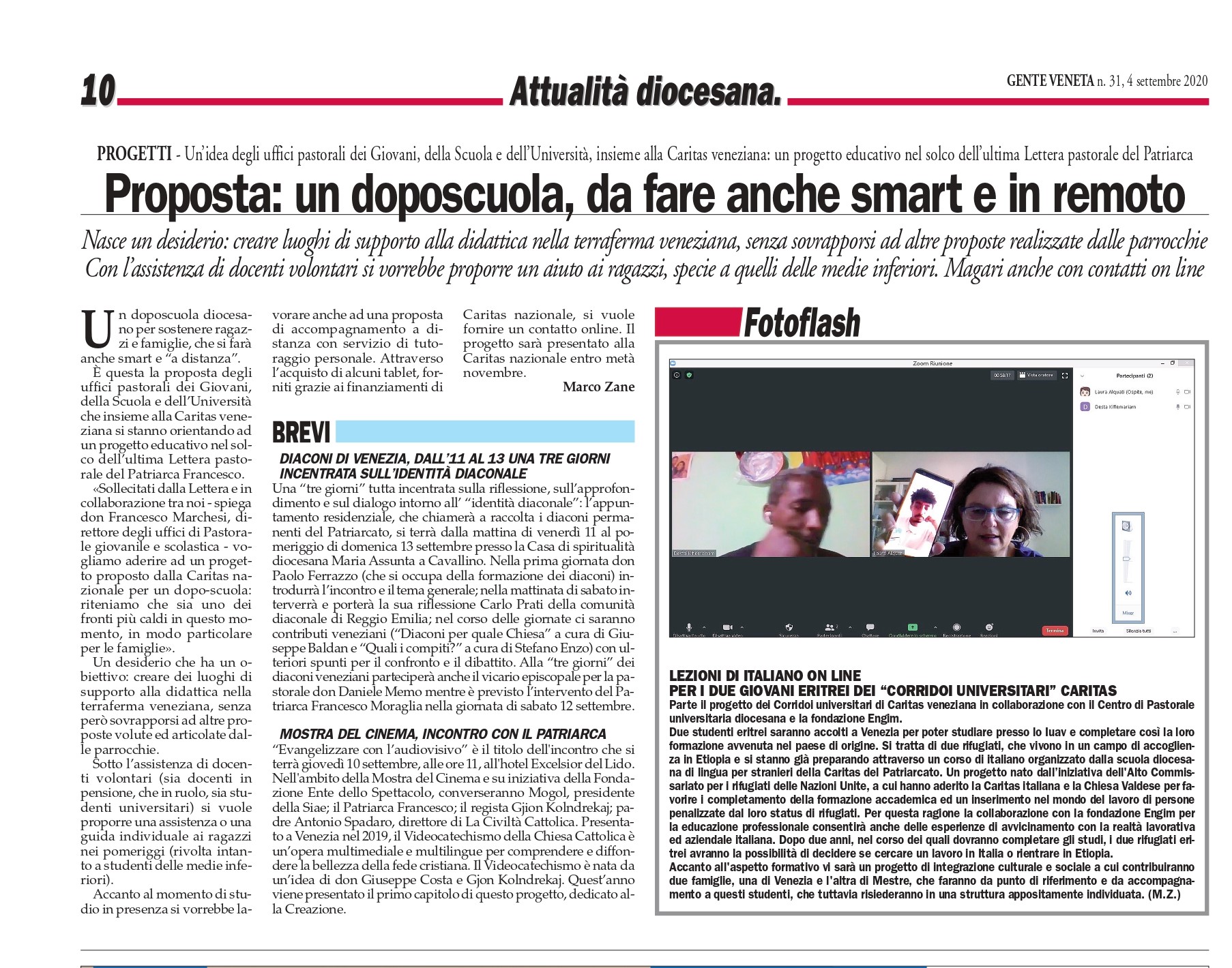 Pastorale giovanile, Pastorale universitaria, Pastorale scolastica e Caritas insieme per sostenere lo studio dei ragazzi delle medie, con accompagnamento in presenza e anche on line. Un’iniziativa importante sul territorio, che già alcune parrocchie hanno attivato da qualche anno e che intercetta bene il desiderio del Patriarca espresso nell’ultima Lettera pastorale:
