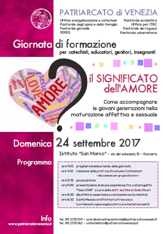 Dentro questo orizzonte tracciato dal nostro Patriarca Francesco gli uffici diocesani Evangelizzazione e catechesi, Pastorale degli sposi e della famiglia, Pastorale giovanile, Pastorale dei ragazzi, Pastorale scolastica, Ufficio IRC, Pastorale universitaria, ODERS ti invitano ad una