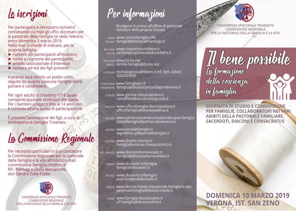 Questo il titolo della Giornata di formazione del prossimo 10 marzo, promossa dalla commissione regionale per la pastorale della famiglia e la vita del Triveneto organizza una giornata di studio e condivisione per famiglie, collaboratori nei vari ambiti della pastorale familiare, sacerdoti, diaconi e consacrati/e.