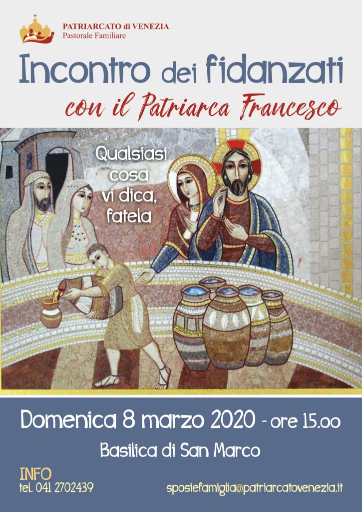 Il Patriarca Francesco offrirà una meditazione a partire dal Vangelo delle nozze di Cana, cui si riferisce il titolo “Qualsiasi cosa vi dica, fatela”.