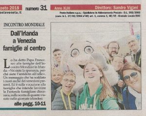 Alcuni articoli di Gente Veneta sull’Incontro mondiale delle famiglie che si è celebrato dal 21 al 26 agosto 2018 a Dublino.