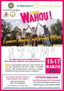 Educare all’affettività, alla sessualità e all’amore CORSO DI FORMAZIONE PER GENITORI, EDUCATORI, CATECHISTI ED INSEGNANTI OBIETTIVO: fornire agli adulti gli strumenti per diventare protagonisti nell’educazione dei giovani all’affettività, alla sessualità e all’amore. Una corretta educazione sessuale può cambiare le scelte e la vita di un giovane; è importante, pertanto, riuscire ad integrare armonicamente gli aspetti […]