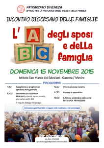 Carissimi/e, avete già segnato in agenda domenica 6 novembre? No??? Appuntatevi subito “Festa delle famiglie” all day presso l’istituto salesiano “San Marco” alla Gazzera. Il tema centrale sarà l’esortazione apostolica post-sinodale Amoris Laetitia; saranno presenti il Patriarca Francesco e i coniugi Giuseppina de Simone e Franco Miano (presenti al Sinodo come coppia di “esperti”). Sabato 10 […]