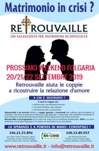 Retrouvaille è un servizio esperienziale offerto a coppie sposate o conviventi che soffrono gravi problemi di relazione, che sono in procinto di separarsi o già separate o divorziate, che intendono ricostruire la loro relazione d’amore lavorando per salvare il loro matrimonio in crisi, ferito e lacerato. Cfr. allegato per informazioni. Il prossimo weekend indirizzato alle coppie trivenete e per i religiosi/e […]