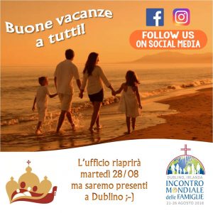 Don Pierpaolo e segreteria augurano buone vacanze a voi e alle vostre famiglie! Vi porteremo con noi a Dublino da Papa Francesco.
