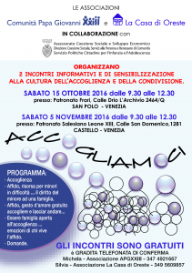 SABATO 22 OTTOBRE 2016 – ore 16.30 Sala San Marco – Centro Cardinal Urbani – Via Visinoni 4-C Zelarino – Mestre (VE)