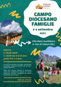 PROGRAMMA Arrivo in Basilica della Salute dei gruppi e delle famiglie ore 16.00 (ciascun gruppo o famiglia può organizzare autonomamente il proprio pellegrinaggio verso la Basilica, magari pregando il rosario) Preghiera del vespro e breve catechesi Affidamento a Maria e possibilità di accostarsi alla Confessione Al termine merenda insieme nel chiostro del Seminario Vi aspettiamo […]