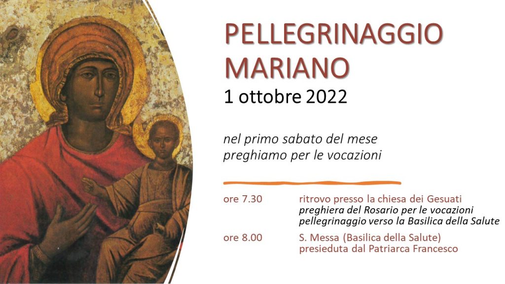 Sabato 1 ottobre: appuntamento alle ore 7.30, dai Gesuati alla Salute, per la ripresa dei pellegrinaggi mariani mensili con il Patriarca Francesco e il Seminario
