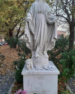 Grave atto vandalico contro la statua della Madonna in piazzale Giovannacci a Marghera. Il Patriarca: grande tristezza e dolore, invito alla preghiera