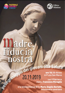 Il 20 novembre sera, come tradizione, si svolgerà il Pellegrinaggio dei giovani alla Madonna della Salute col Patriarca Francesco, in collaborazione quest’anno col nostro CMD.