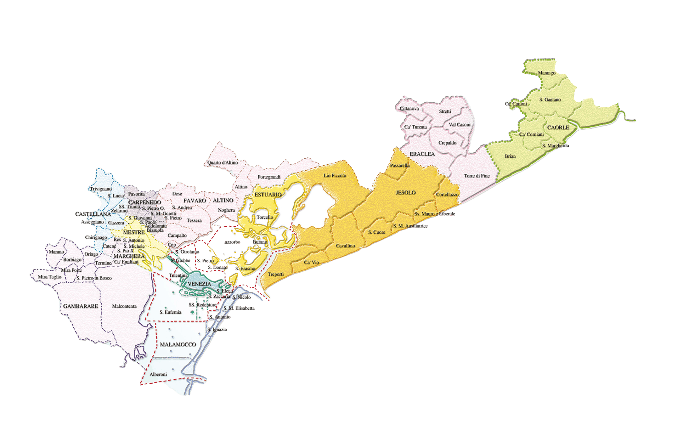 A seguito del Decreto Generale sui Vicariati Foranei nel Patriarcato di Venezia (Prot.2025-0630), enrato in vigore il giorno 18 maggio 2025, i vicariati foranei sono 8 e così individuati: