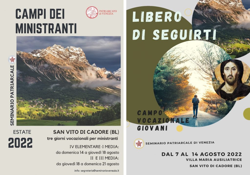 - campo vocazionale fascia II e III media dal pomeriggio del 18 a domenica 21 agosto nella casa del Seminario a San Vito di Cadore