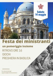 Cari Confratelli, cari educatori, ci avviciniamo alla giornata del 1° maggio e ci prepariamo a vivere una nuova estate. Come già sperimentato lo scorso anno, vogliamo invitare i ministranti e le loro famiglie per una giornata di condivisione e di riposo insieme, presso la basilica della Salute e gli spazi del nostro Seminario. Per questa […]